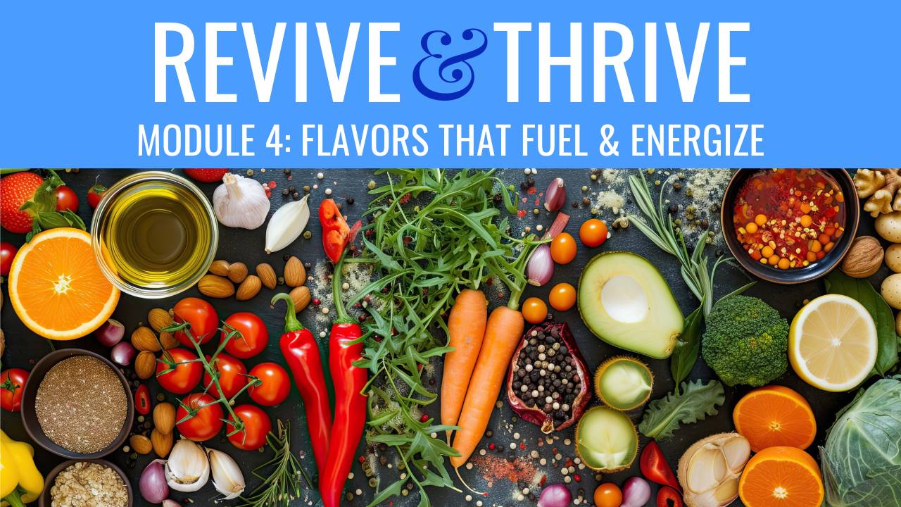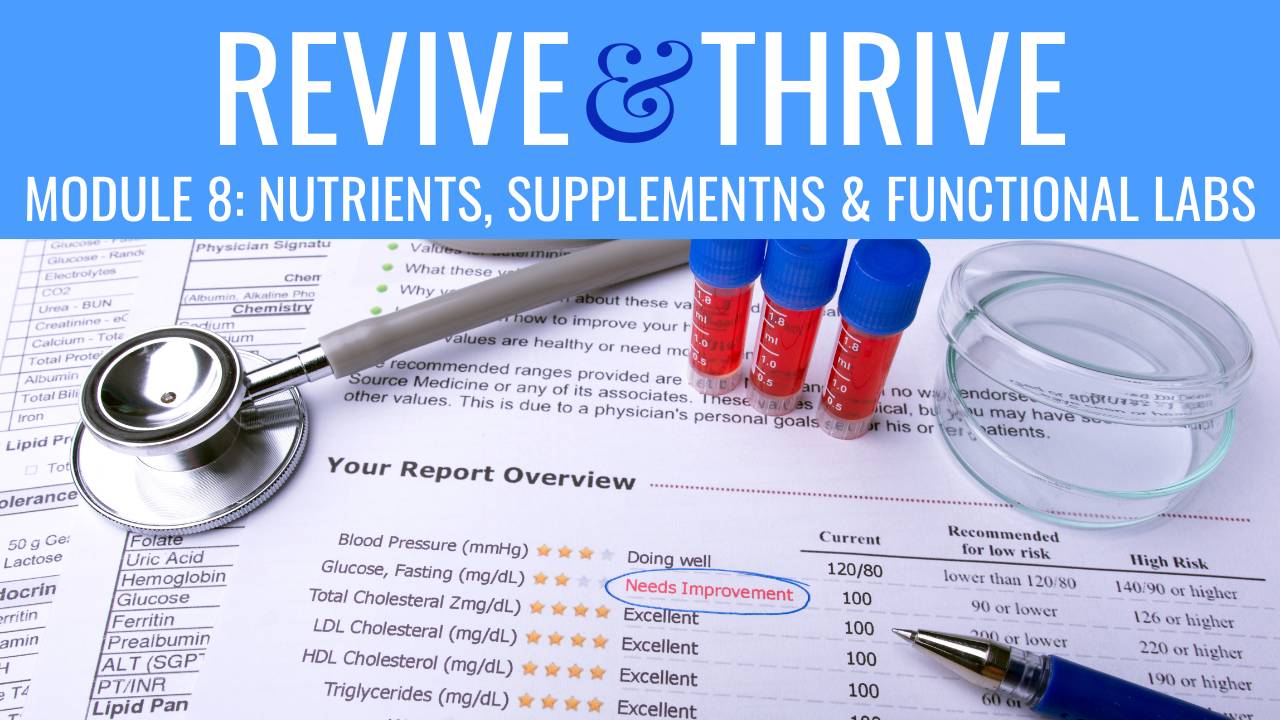 Revive & Thrive is a self‑paced online course that helps you decode your symptoms so you can improve your sleep, energy, digestion, weight, and more with clear, actionable steps.